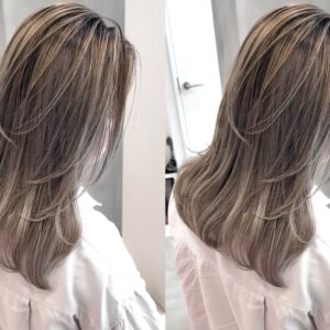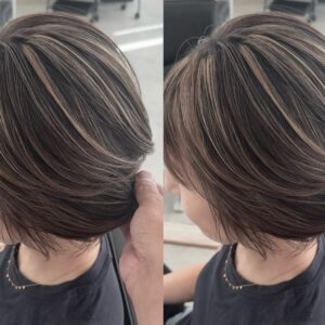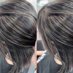 白髪を活かしながら、全体に細かく入れたナチュラルな